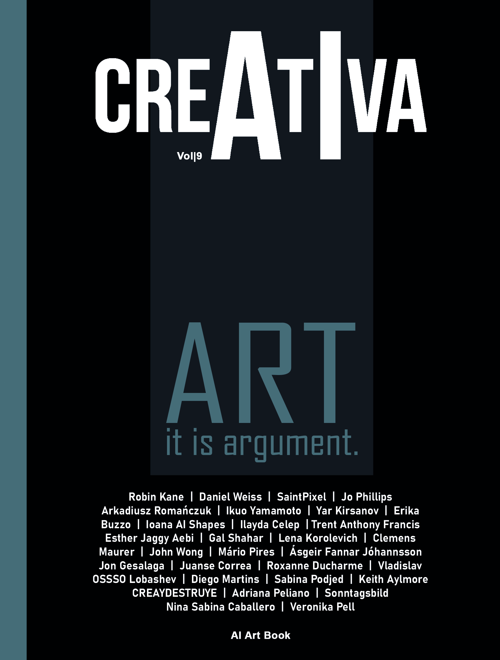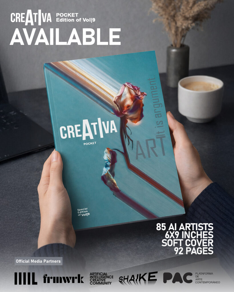 creAtIva AI ART BOOK invites visual artists and creators from any country to participate in Volume 9, an issue dedicated to exploring the foundations of AI-generated art in the contemporary context. If the history of art has been shaped through movements, ruptures, and manifestos, this is the moment to define what AI contributes as an autonomous artistic language.This open call accepted all kinds of aesthetics and visual languages generated through generative artificial intelligence tools, provided that the work was developed from a clear artistic intention and demonstrated formal coherence, conceptual solidity, and a recognizable personal voice.