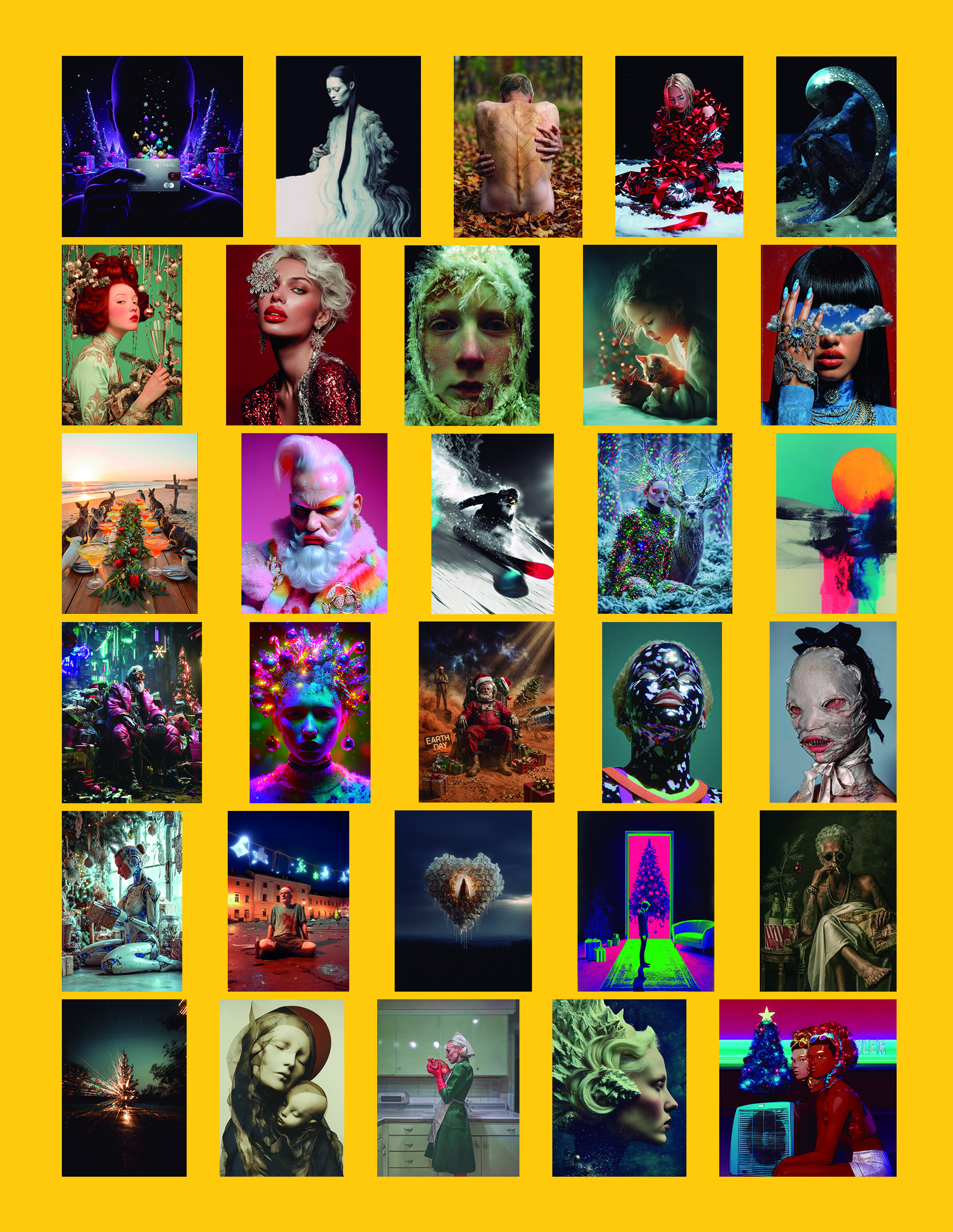 We set aside our usual perspective to immerse ourselves fully in the end of the year and its festivities. In this volume, 32 AI artists share their personal vision through a single image. It may be beautiful or unsettling; it may reveal their love for — or rejection of — the Christmas season. Others focus on different symbols associated with this time of year: the turning of the calendar, the arrival of winter, cold or warmth… Where in the world is the artist located?