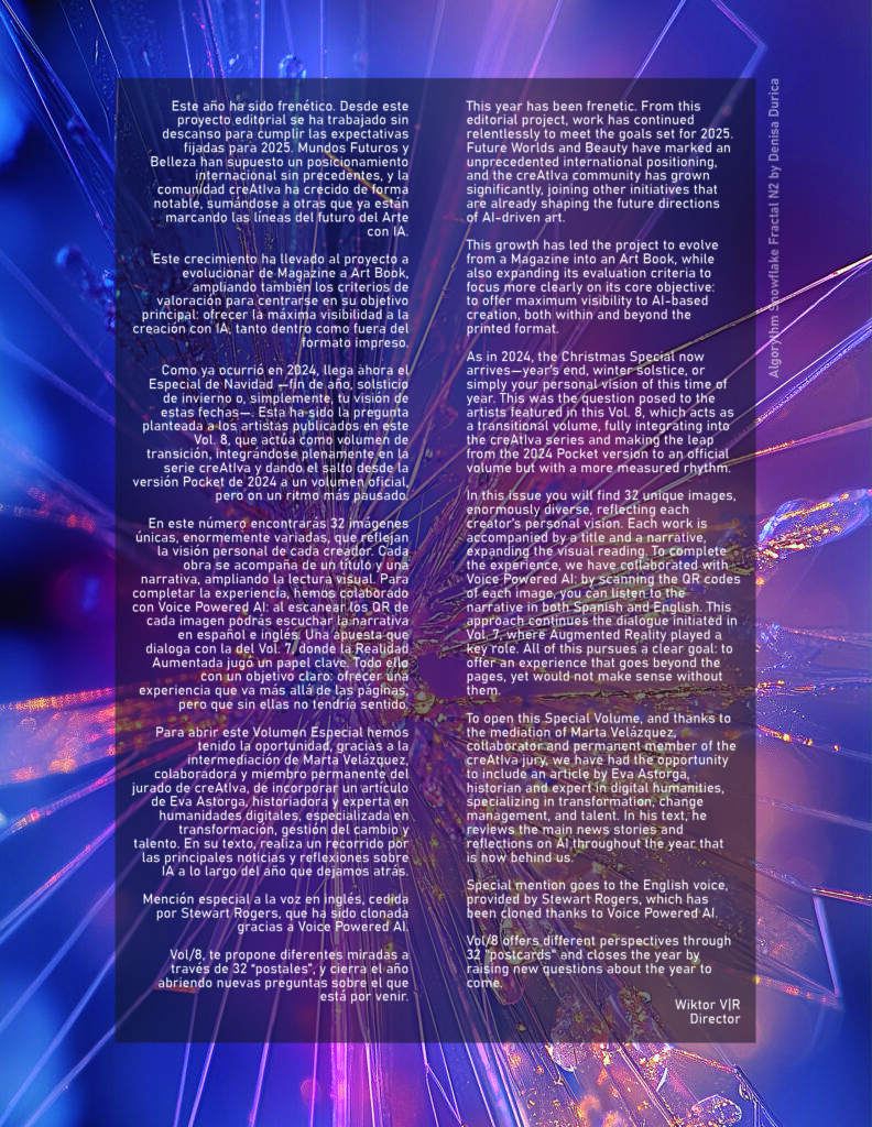 Once again, we are committed to making creAtIva an interactive experience that goes beyond its pages, seeking a true synergy between the physical and the digital. For this reason, we have decided to incorporate voice.